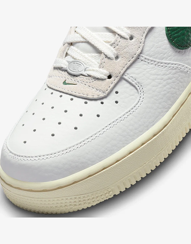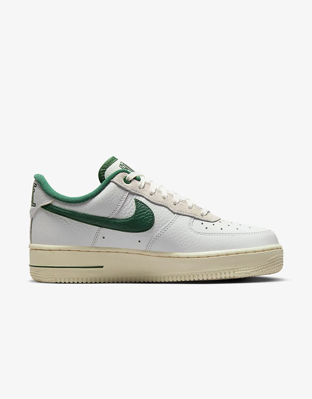Nike Air Force 1 Low 07 LX Command Force “Gorge Green” một phiên bản giày dành riêng cho phái nữ, có sắc màu trắng và xanh lá mang đậm hơi hướng hoài cổ từ mẫu giày bóng rổ huyền thoại Nike Air Command Force. Đôi giày này nổi bật với thiết kế tinh tế, kết hợp giữa phong cách hiện đại và những chi tiết đặc trưng từ thập niên 90, mang đến sự mới mẻ nhưng vẫn giữ được nét cổ điển vốn có của dòng Air Force 1.