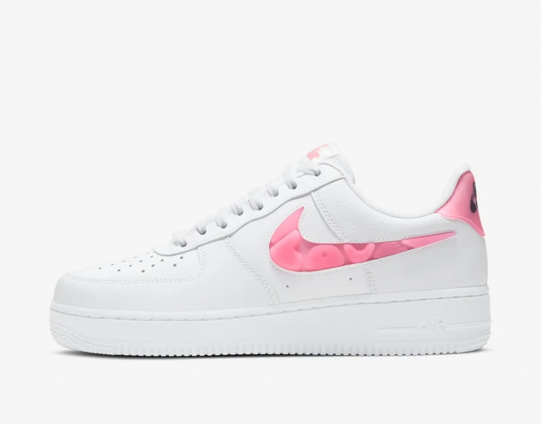 - Giày Nike Air Force 1 Low ‘07 SE “Love For All” (w) CV8482-100 dành cho nữ sở hữu phần thân giày bằng da trắng với điểm nhấn màu pastel chào mừng Ngày lễ tình nhân. Chữ cái màu hồng đúc nổi bật trên biểu tượng Swoosh đặc trưng, tạo nên chữ ‘Love’ ở mặt bên và ‘Love for All’ ở mặt đối diện.