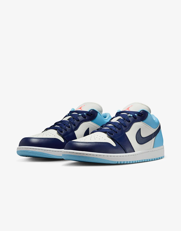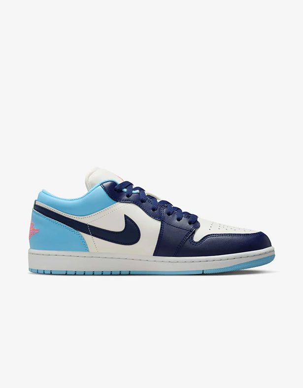 - Giày Nike Air Jordan 1 Low “Blue Chill” 553558-149 nổi bật chính là bảng màu ấn tượng của sự kết hợp giữa xanh nhạt, xanh navy, trắng và cam. Sự hòa quyện này mang đến vẻ ngoài tươi trẻ nhưng vẫn sang trọng, dễ dàng phối cùng nhiều phong cách thời trang khác nhau và trở thành điểm nhấn hoàn hảo.