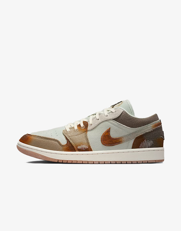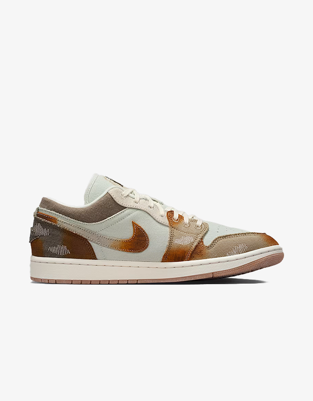 - Giày Nike Air Jordan 1 Low SE “Sail Light Bone” IM6664-991 ấn tượng phối màu đa sắc, màu cánh buồm mang lại một tông màu be nhạt, tạo cảm giác vintage. thân giày hoặc mũ giày với chất liệu vải canvas sắc màu nâu rỉ sét và nâu nhạt không chỉ mang lại vẻ ngoài cao cấp mà còn đảm bảo độ bền vượt trội.