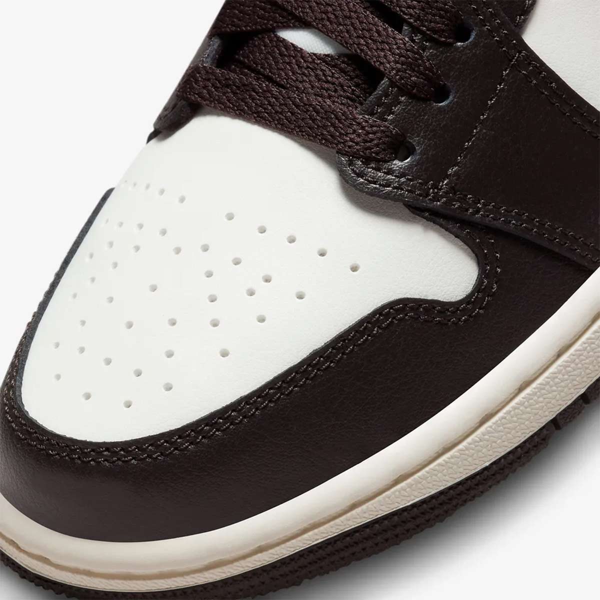 Đôi giày Air Jordan 1 Low “Shadow Brown” sở hữu phần thân giày với da trắng cao cấp, mang lại sự thoáng khí và cảm giác thoải mái khi di chuyển. Điểm nhấn đến từ các lớp da đen phủ trên toebox, dây giày và gót giày, giúp tạo nên sự tương phản đầy nổi bật. Phần Swoosh màu nâu Shadow Brown chạy dọc thân giày chính là chi tiết đặc biệt, mang đến nét sang trọng và khác biệt cho tổng thể.