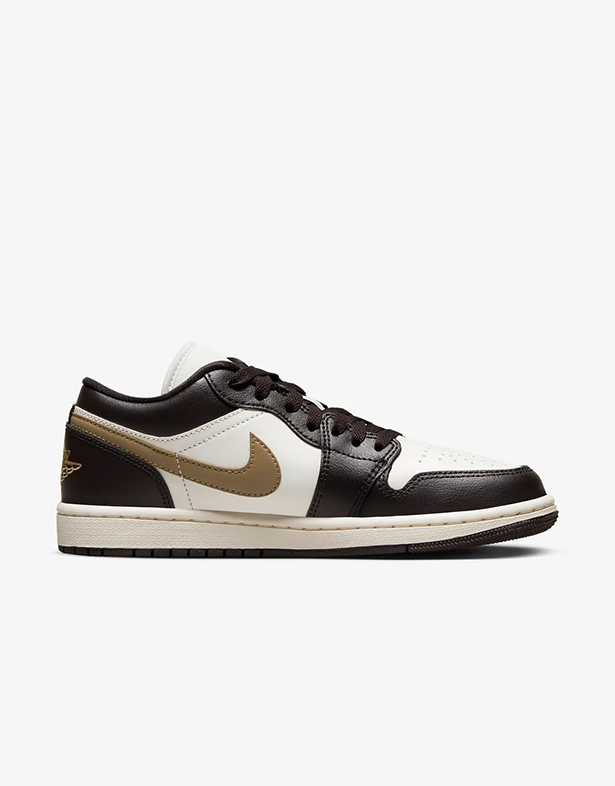 - Giày Nike Air Jordan 1 Low “Shadow Brown” (w) DC0774-200 sở hữu phần thân trên bằng da Sail cánh buồm, trong khi tông màu nâu nổi bật được thể hiện rõ nét trên lớp phủ ngoài và đế ngoài bằng cao su. Swoosh và Jumpman được tô điểm bằng tông nâu cát, đế giữa bằng da cánh buồm hoàn thiện tổng thể.