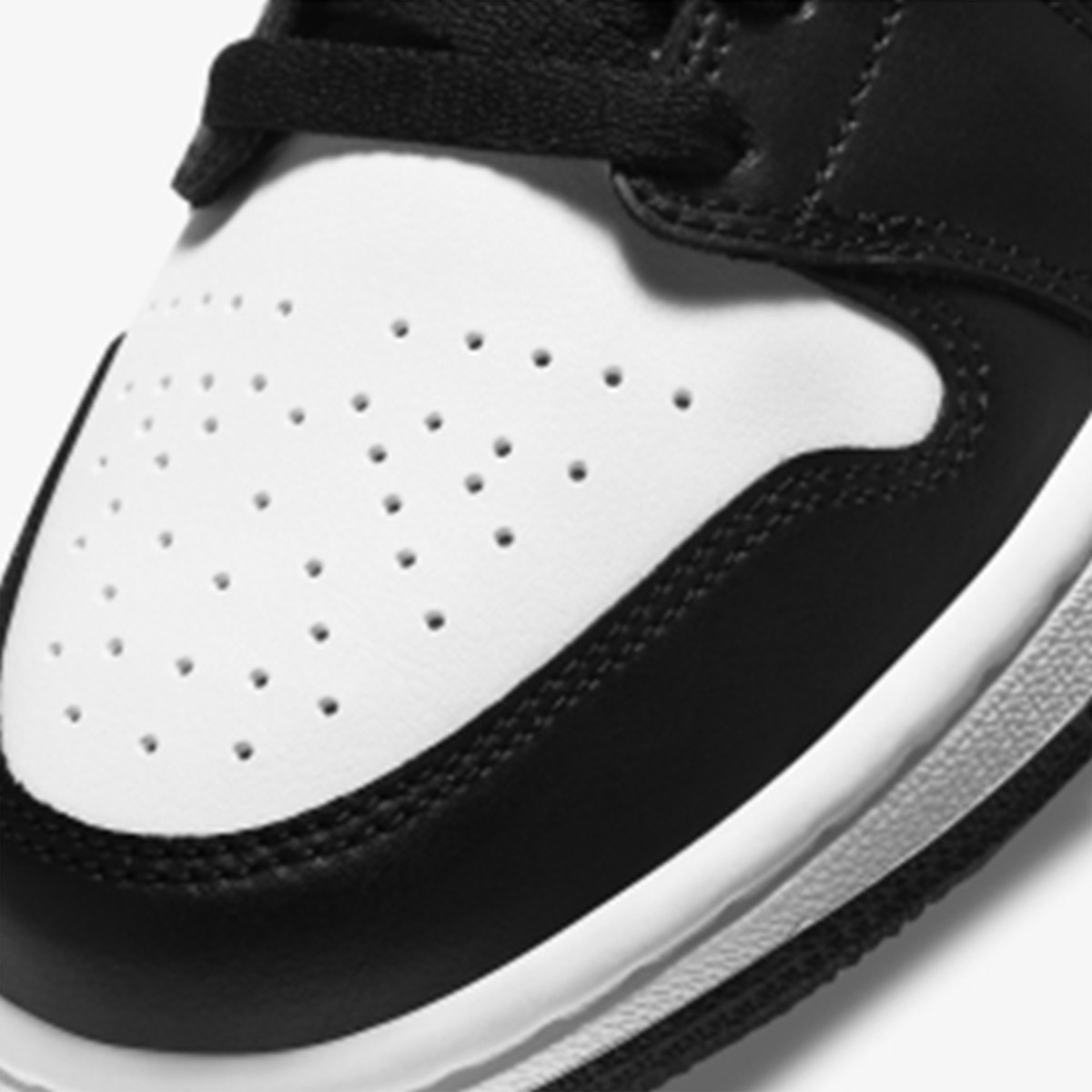 Nike sử dụng da tổng hợp chất lượng cao giúp giày bền màu, hạn chế nhăn gãy khi sử dụng lâu dài. Phần dây buộc và bảng lỗ màu đen đồng bộ, mang lại tổng thể liền mạch và sang trọng cho Jordan 1 Low “Siren Red”.