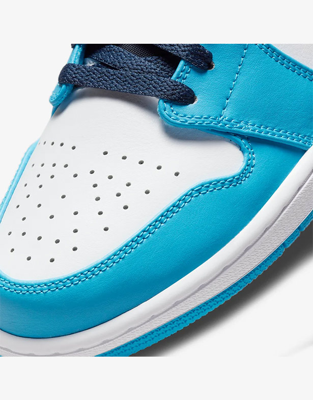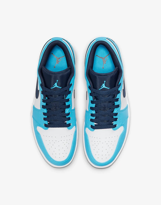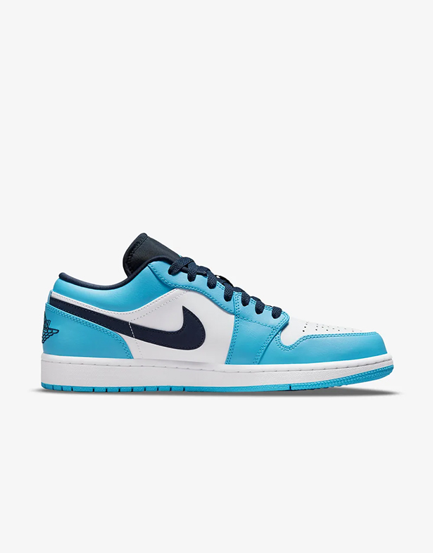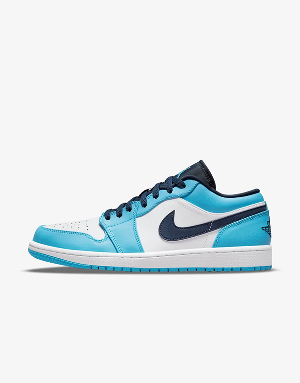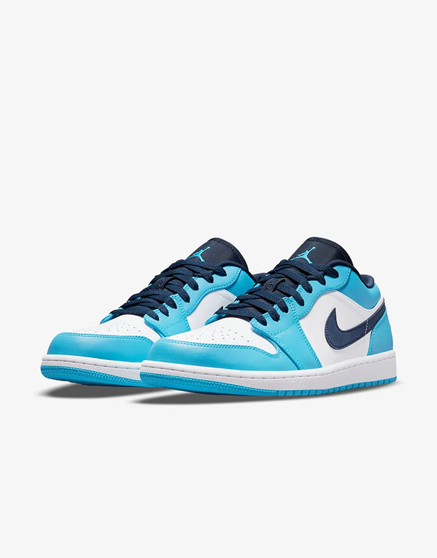 - Giày Nike Air Jordan 1 Low “University Blue” 553558-144 Thiết kế mang nét đẹp thanh lịch, trẻ trung với phần upper bằng da cao cấp. Nền trắng phối cùng lớp phủ xanh Carolina nhẹ nhàng, tạo nên vẻ ngoài tưới mới và dễ phối đồ. Swoosh đen ở hai bên thân nổi bật, làm điểm nhấn hoàn hảo cho tổng thể.