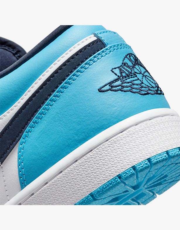 Mỗi chi tiết trên Air Jordan 1 Low “University Blue” đều được chăm chút tỉ mỉ, khẳng định đẳng cấp của Jordan Brand. Logo Jumpman màu xanh được thêu nổi bật trên lưỡi gà nylon màu đen, một biểu tượng không thể nhầm lẫn của dòng giày Air Jordan. Phía sau gót giày, biểu tượng Wings kinh điển được thêu sắc nét, gợi nhớ về di sản bóng rổ lừng lẫy của đôi giày. Những chi tiết nhỏ này không chỉ tăng thêm tính thẩm mỹ mà còn là lời nhắc nhở về câu chuyện và tinh thần mà Michael Jordan đã xây dựng. Thiết kế Low-top mang lại sự linh hoạt và thoải mái tối đa, phù hợp cho cả việc đi lại hàng ngày lẫn những buổi dạo phố năng động.