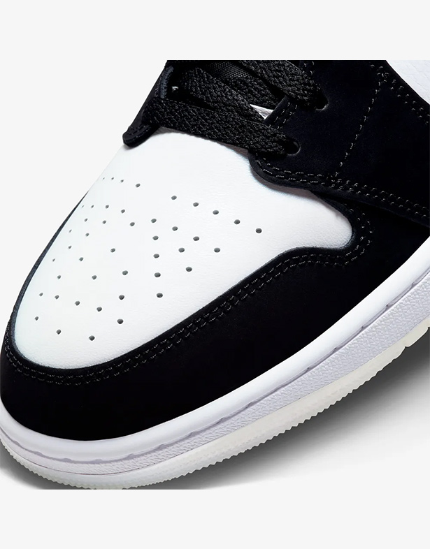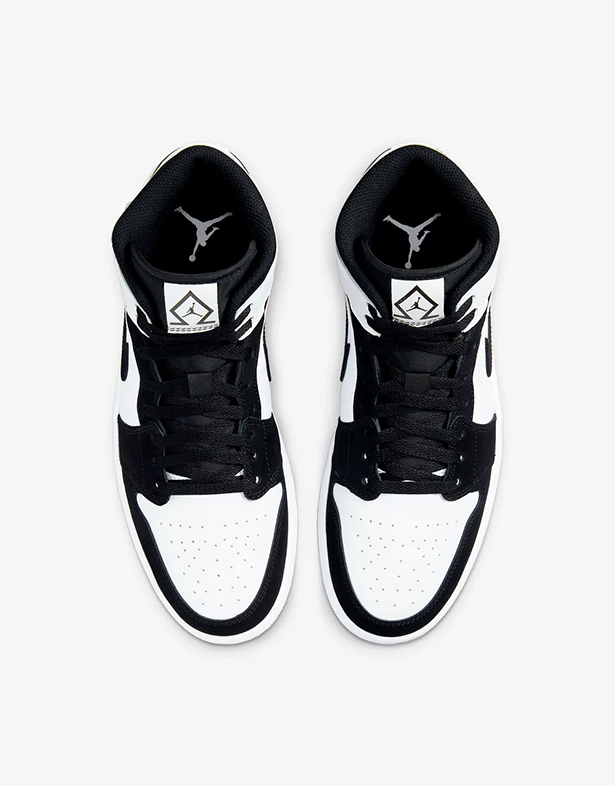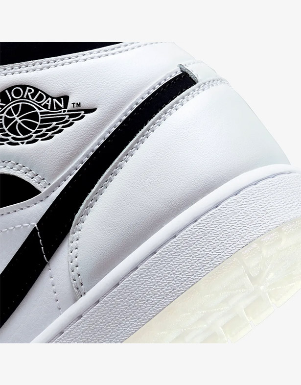 Phối màu đen trắng của Nike Air Jordan 1 Mid SE “Diamond” mang đến sự thanh lịch và dễ ứng dụng. Upper bằng da trắng cao cấp làm nền cho các chi tiết đen nổi bật ở phần mũi giày, dấu Swoosh và cổ mid-cut. Cách phối màu tương phản này tạo nên sức hút mạnh mẽ, giúp người mang dễ dàng nổi bật trong mọi hoàn cảnh.