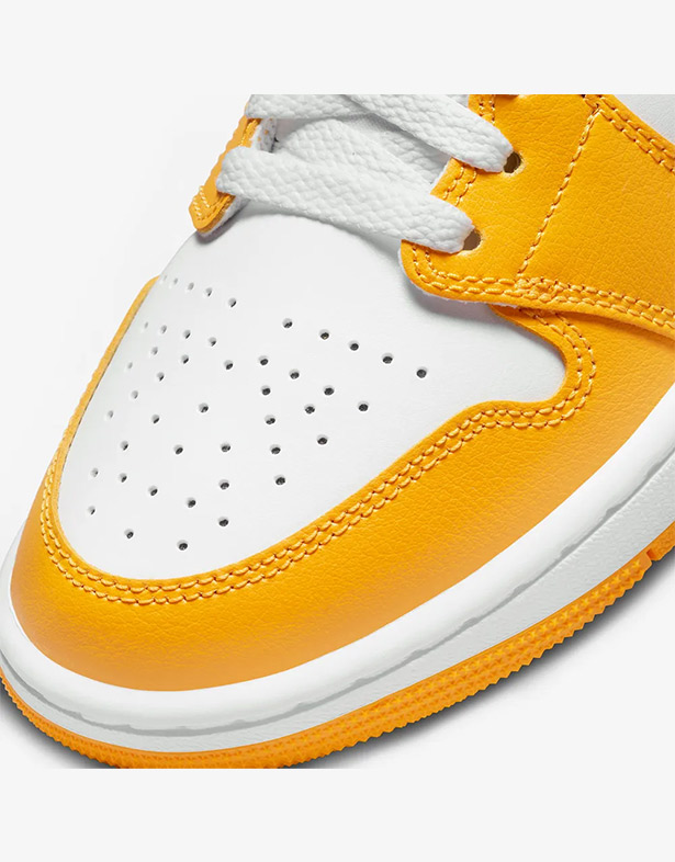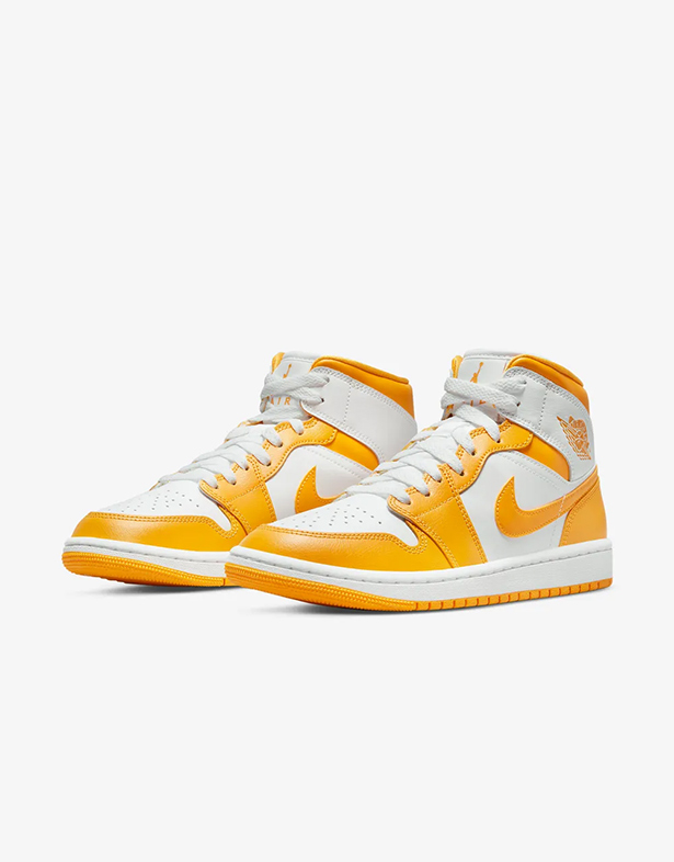 - Giày Nike Air Jordan 1 Mid “University Gold” (w) BQ6472-117 quá quen thuộc với sở hữu thiết kế cổ (mid-top) kinh điển, phối màu trắng và lớp da màu vàng bao phủ xung quanh phần upper, tạo nên sự tương phản mạnh mẽ từ chất liệu da cao cấp, đôi giày là sự kết hợp tinh tế giữa cổ điển và hiện đại.
