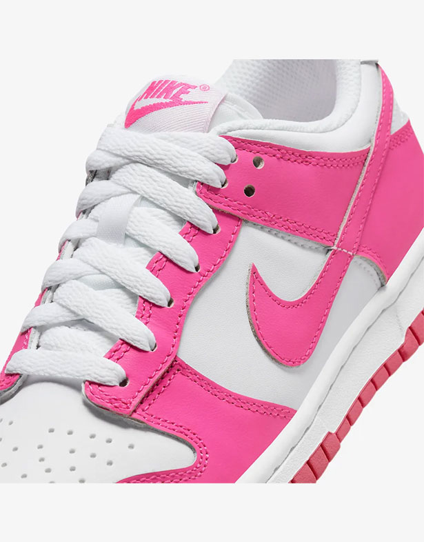 Không chỉ đẹp ở phần nhìn, đôi Nike Dunk Low Gs “Laser Fuchsia” còn giữ nguyên đặc trưng của dòng Dunk, đế cao su chắc chắn, độ bám tốt và cảm giác ổn định khi di chuyển. Dù được thiết kế cho trẻ em và thanh thiếu niên, chất lượng sản phẩm vẫn được đảm bảo như các bản OG đình đám, từ chất liệu, đường may đến form dáng.