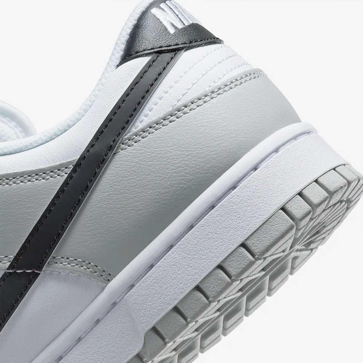 Điểm nổi bật nhất của Dunk Low SE GS Lottery Pack “Grey Fog” nằm ở biểu tượng Swoosh đặc biệt. Lớp phủ bên ngoài có khả năng mòn dần theo thời gian sử dụng hoặc khi bạn chủ động “cào nhẹ”, để lộ ra màu sắc ẩn bên dưới tái hiện đúng tinh thần của một tấm vé số cào đầy bất ngờ. Đây chính là chi tiết khiến đôi giày trở nên độc đáo và được giới trẻ săn đón.