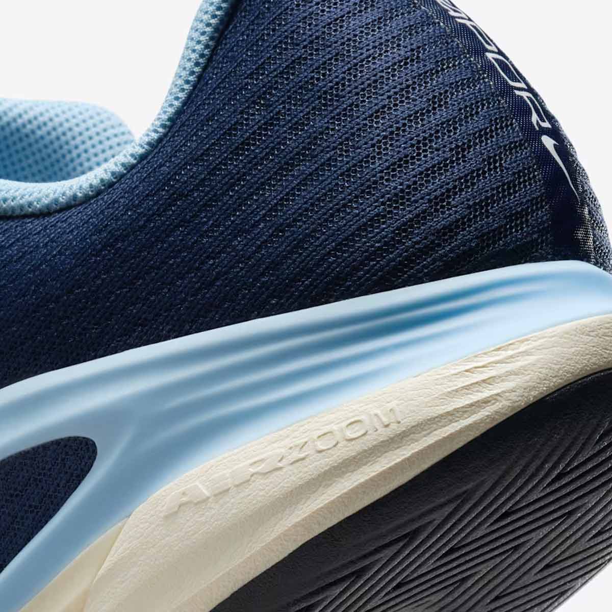 Công nghệ Air Zoom ở gót giúp hấp thụ lực tốt, mang lại cảm giác êm ái và độ bật hoàn hảo. Phần đế ngoài bằng cao su rãnh xương cá (herringbone pattern) mang đến độ bám vượt trội, đặc biệt trên mặt sân cứng.