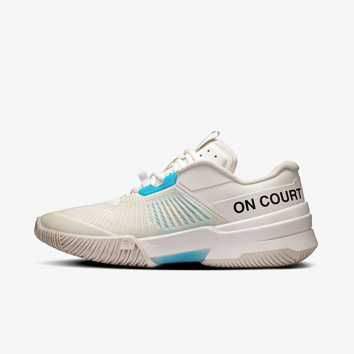 Hệ thống midfoot lacing cage giữ chắc bàn chân khi thực hiện các cú đánh mạnh hoặc chuyển hướng đột ngột. Móc dây trong được thiết kế thông minh, hạn chế tình trạng đứt dây. Đế ngoài bằng cao su với họa tiết xương cá (herringbone) tách rời giúp bám sân cực tốt, nhất là trên mặt sân cứng.